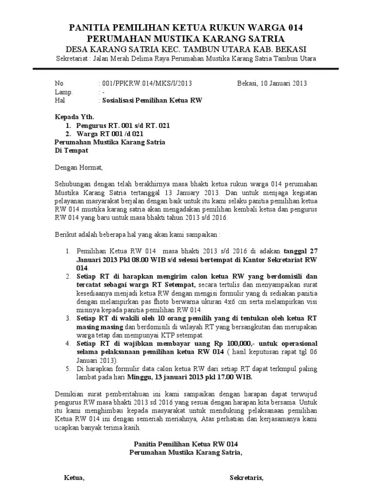 Masa bhaktinya ditetapkan dengan surat keputusan kepala desa. No 039 sk panitia pemilihan rw. Rt yang difasilitasi ketua rw dan diusulkan kepada lurah dengan dilengkapi berita acara. Surat pengunduran diri ketua rt. Contoh sk pembentukan panitia pemilihan kepala desa .